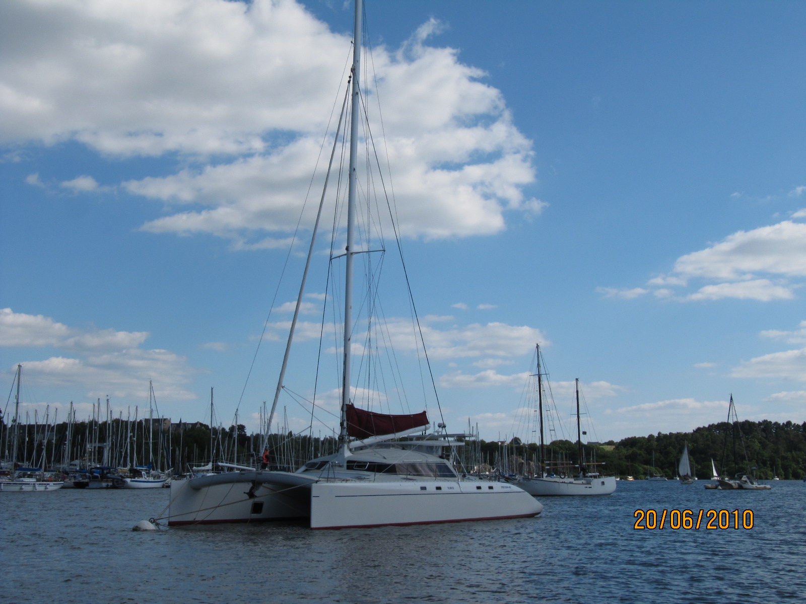 Nous voulions un bateau marin et confortable, capable d'aller vite pour une meilleure sécurité. C'est ainsi qu'à Arzal, nous sommes tombés sur un Freydis 49, un catamaran conçu par l'architecte Erik Lerouge. Ce bateau de 4 ans d'âge, fin et élégant, en excellent état et ayant déjà 2 transats à son actif, nous a de suite séduits. Nous l'avons appelé Céramaje.